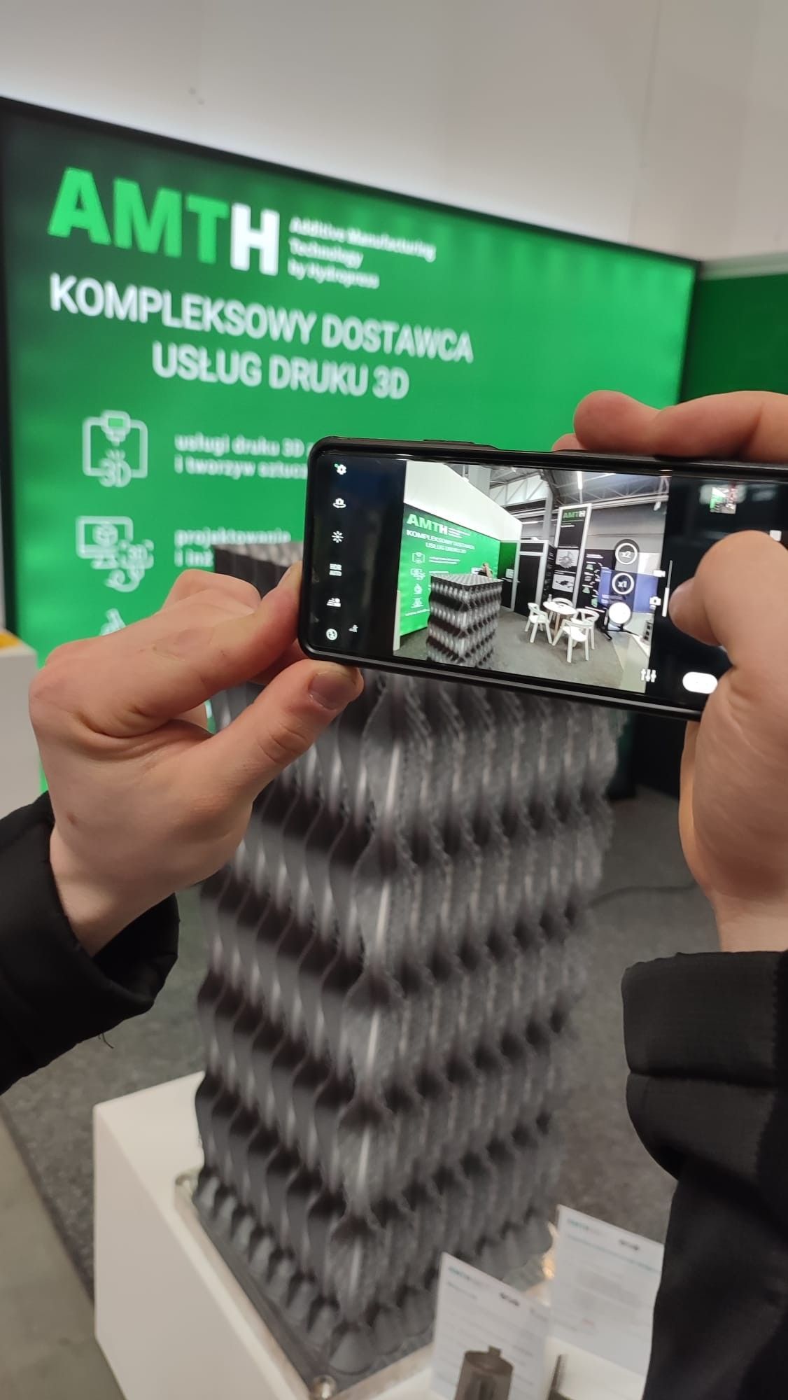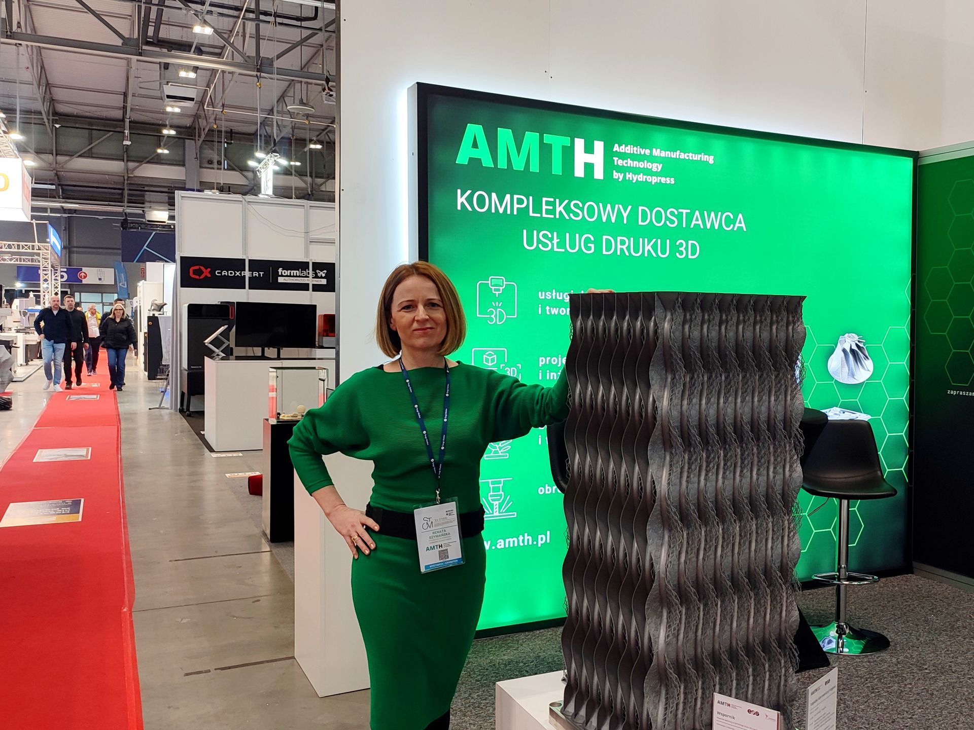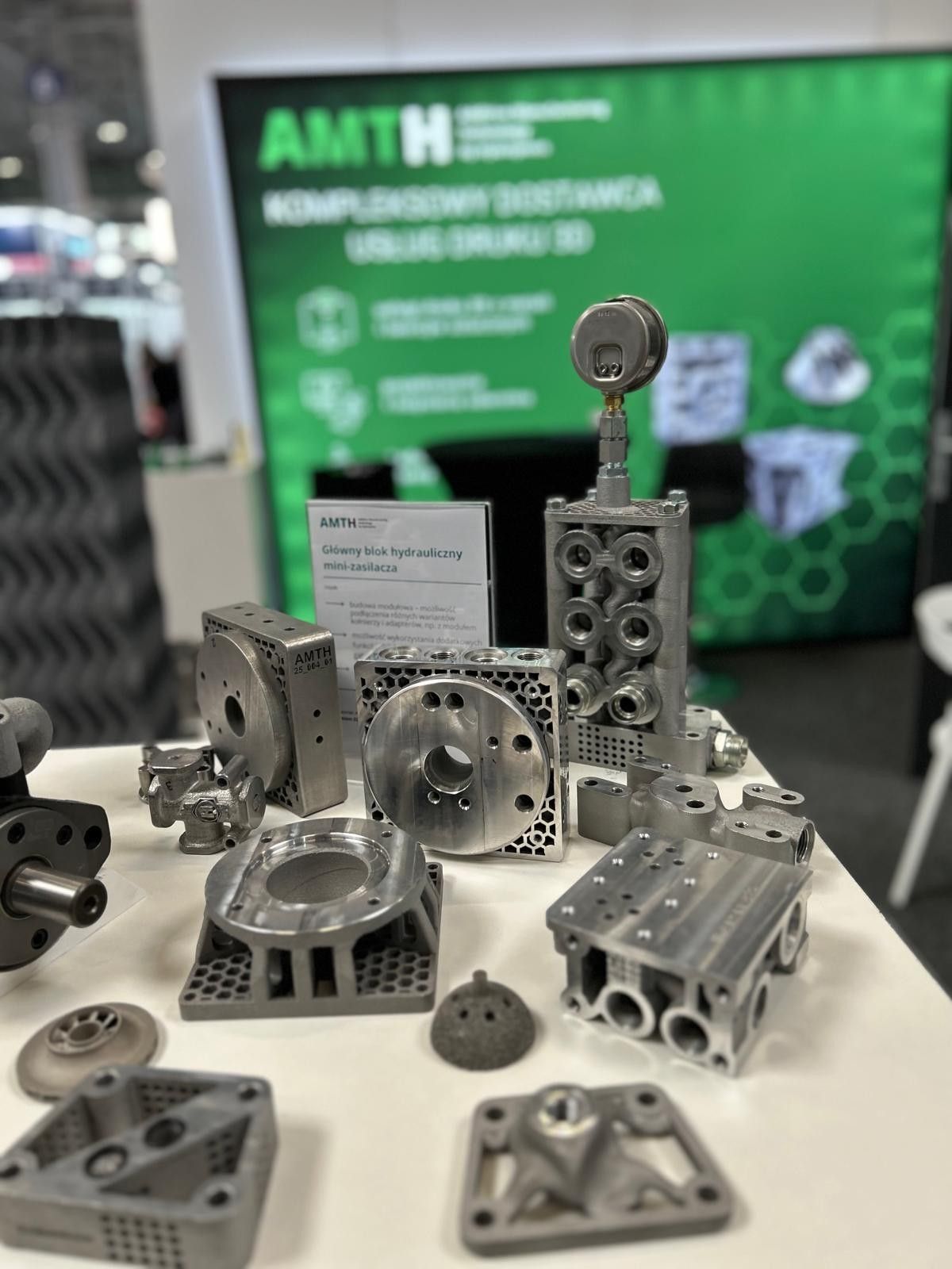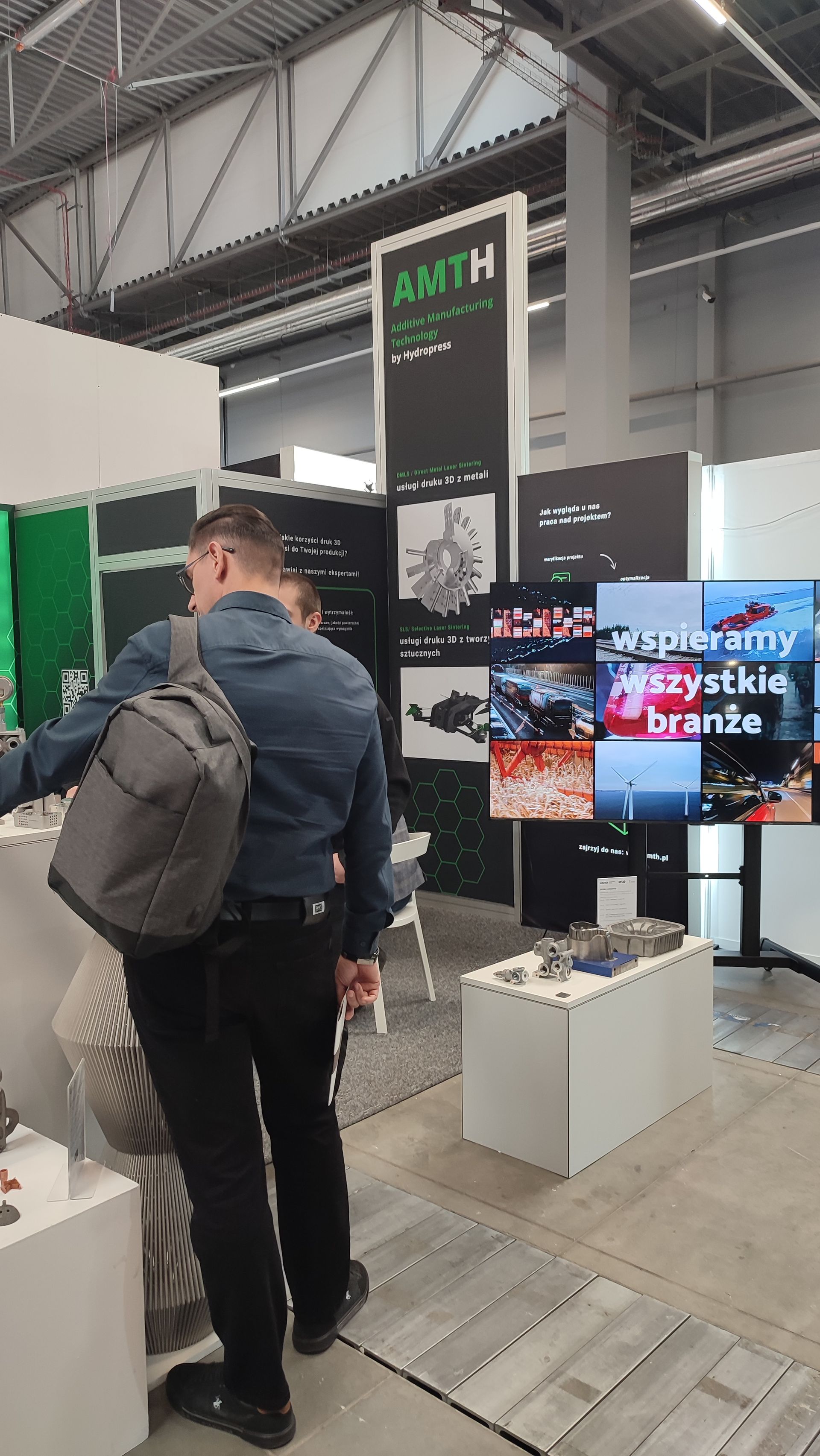 Nasze stoisko było debiutem naszego brandu AMTH, dedykowanego usługom Hydropress w obszarze technologii addytywnych (AM). Stało się przestrzenią intensywnych rozmów i wymiany doświadczeń. To właśnie tutaj odwiedzający szukali konkretnych odpowiedzi: jak usprawnić produkcję, jak zwiększyć efektywność i które dokładnie komponenty warto drukować z metalu.